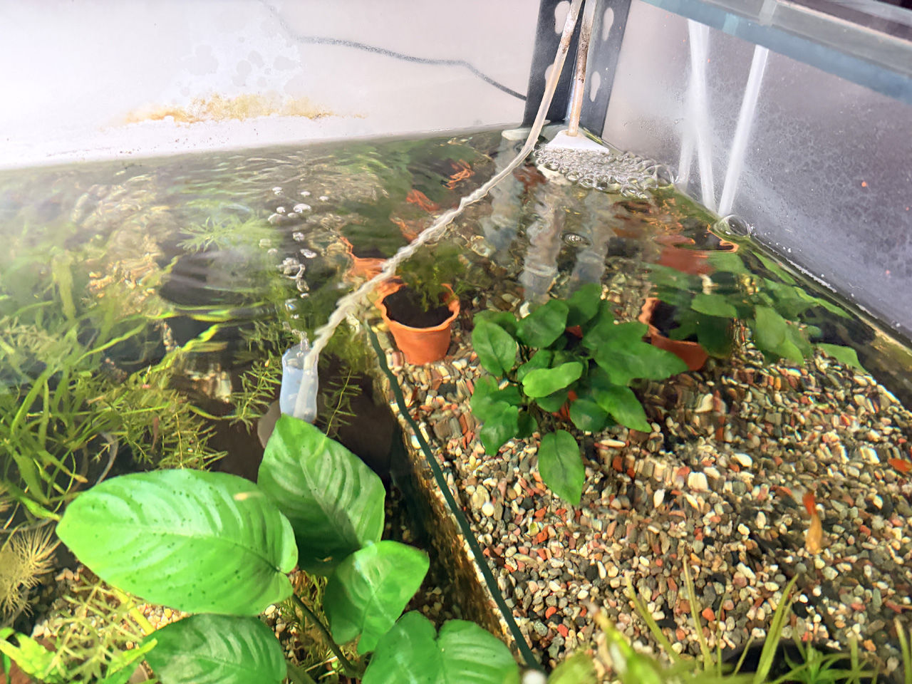 說實話,氣舉過濾並沒有特別規定要怎麼用,有打氣就有保庇,考慮到揚程、管子長度、魚缸內部情況後,真的沒有標準答案。
